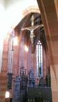Der hoch gewölbte Chor in rotem Sandstein hebt sich mit einer Vielzahl an Grabdenkmälern und Statuen vom schlichten Mittelschiff ab. Große Fenster spenden dem Raum viel Licht. Zwischen ihnen führen hohe Pfeiler zum spätgotischen Kreuzrippengewölbe, was reich bemalt ist.