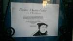 Rechts neben dem Eingang der Stiftskirche steht eine Statue von Martin Luther. In seinen Händen hält er ein aufgeschlagenes Buch: das Alte und Neue Testament, übersetzt von Dr. Martin Luther.